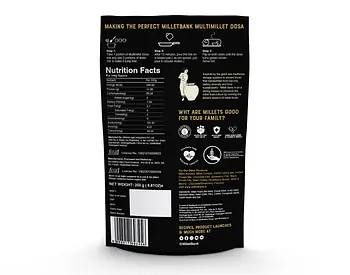 This combo features 1x each of our 250g packs: Multimillet Idli, Multimillet Pongal, Multi Millet Upma, and Multimillet Dosa Mix.